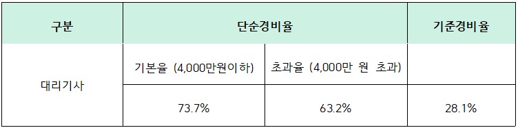 대리기사 단순경비율은 전체 수입 중 일정 비율 전체를 비용으로 인정, 기준경비율은 수입에서 주요 경비는 증빙으로 필요경비를 인정하고, 나머지 비용에 대해서는 기준경비율로 필요경비 산정합니다.