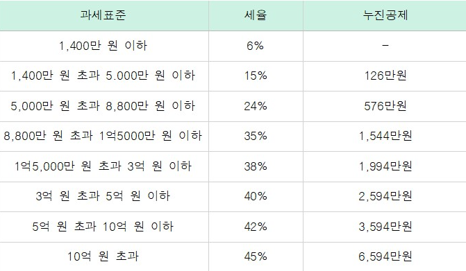 기본적으로 적용하는 세율 적용 방법 : 과세표준 × 세율 - 누진공제액