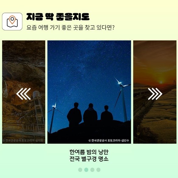 더불어 대한민국 구석구석 홈페이지에서는 지금 여행하기 좋은 국내 여행지를 찾아볼 수 있습니다.
